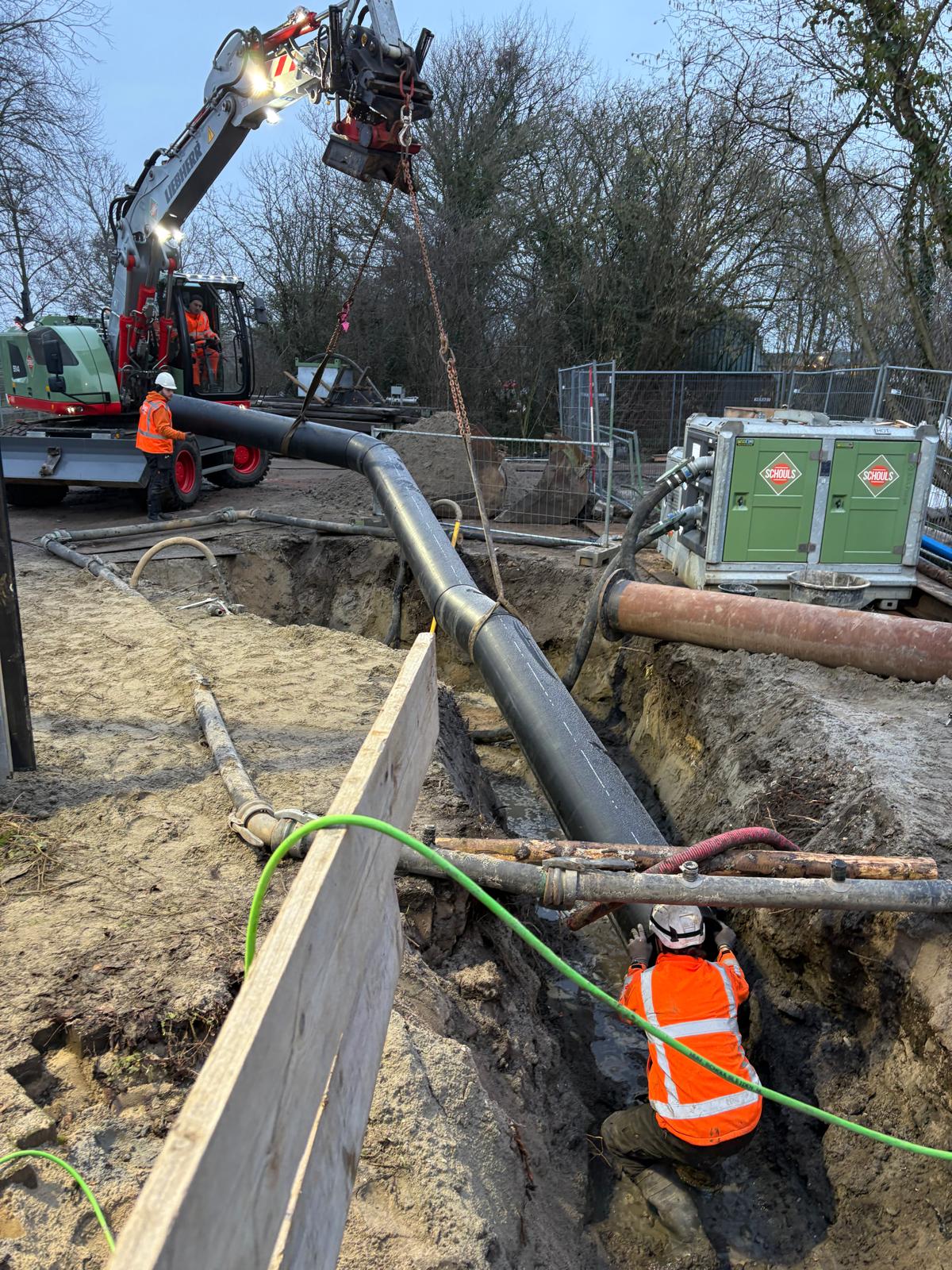 In opdracht van Hoogheemraadschap van Delfland hebben wij de nieuwe persleiding van rioolgemaal Maasland aangesloten op het gemaal. De persleiding tussen rioolgemaal De Lier en rioolgemaal Maasland is hiermee volledig vervangen. Het grootste deel van de persleiding is via een gestuurde boring door Welvreugd aangebracht.