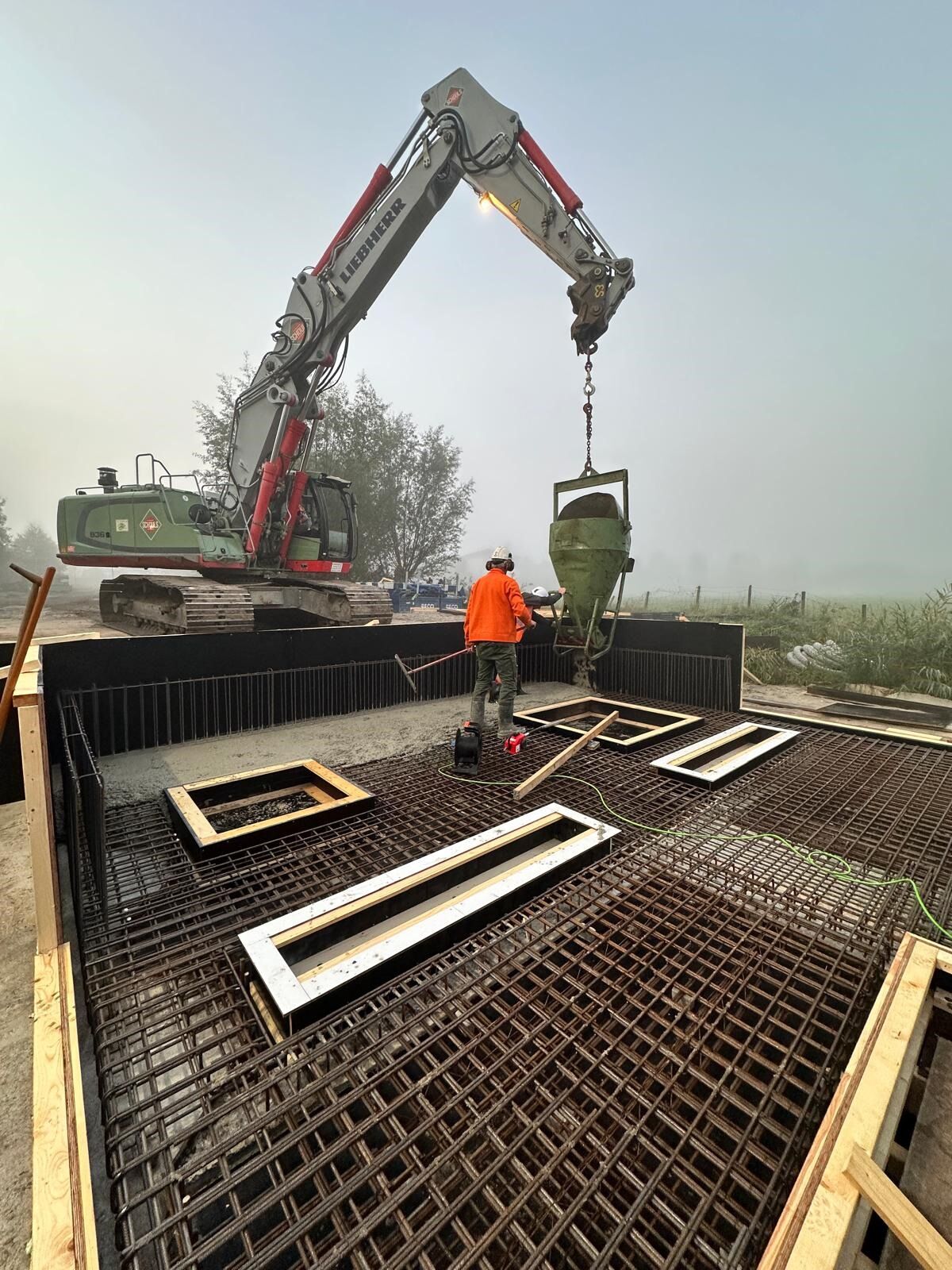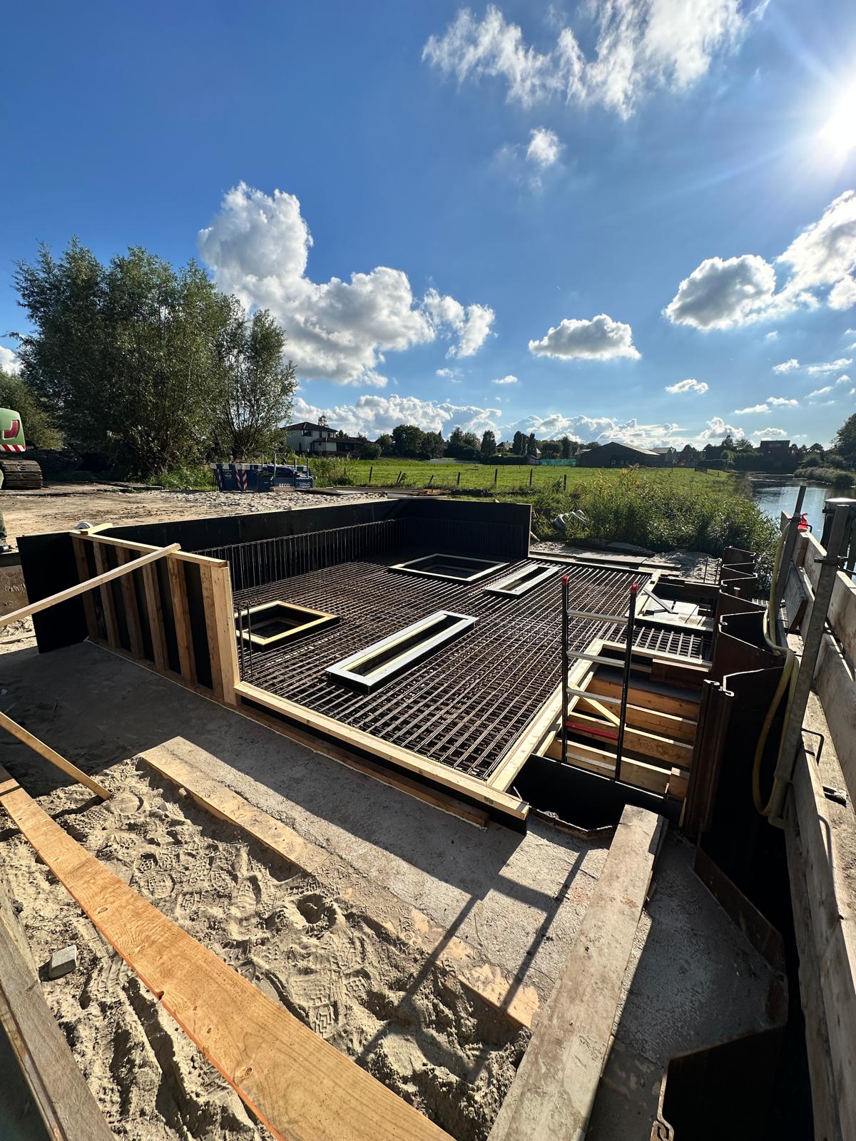 We zijn gestart met de betonwerkzaamheden in en op de aangebrachte damwandkuip. Na het bouwen van meerdere gemaalputten in onze eigen betonhal is het een mooie afwisseling om nu op locatie een gemaalput te realiseren.